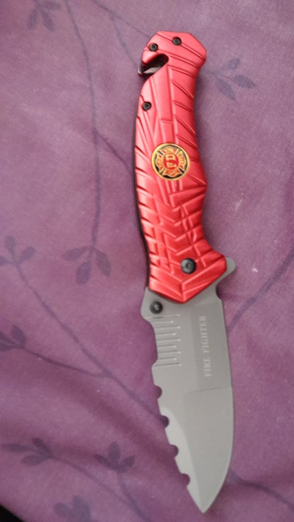 Couteau de pompier avec coupe ceinture et brise vitre.